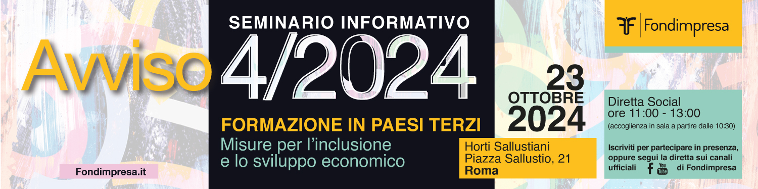 Con il seminario informativo “Misure per l’inclusione e lo sviluppo economico. L’Avviso 4/2024 per la formazione nei Paesi terzi” Fondimpresa si propone di illustrare gli obiettivi, le caratteristiche, le procedure e i requisiti di ammissibilità al finanziamento previsti dall’Avviso.
