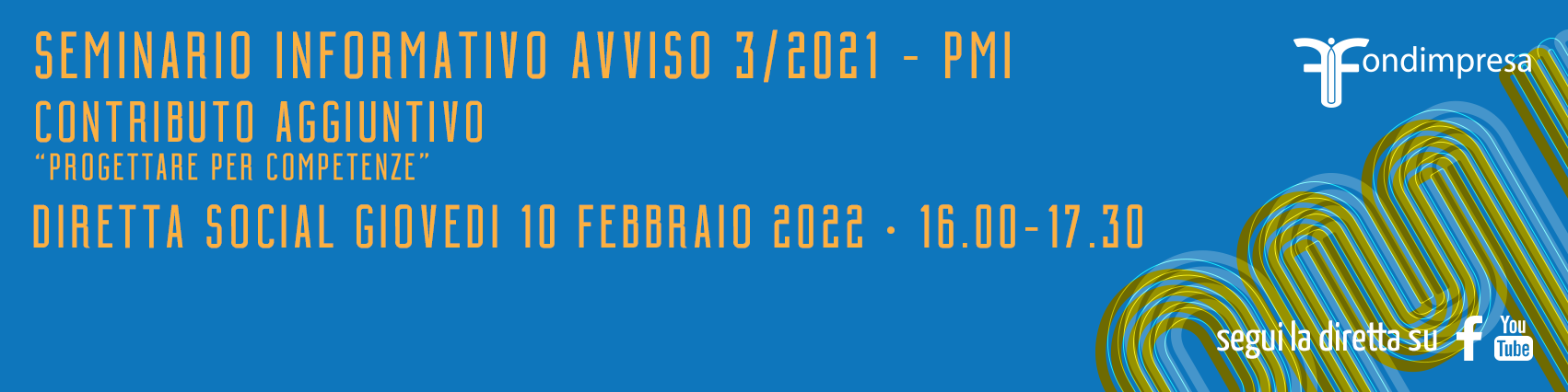 L’evento si svolgerà Giovedì 10 febbraio 2022, dalle ore 16.00 alle ore 17.30 e sarà possibile seguire la diretta sui profili ufficiali Fondimpresa di Facebook e Youtube.